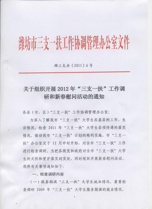 关于组织开展2012年“三支一扶”工作调研和新春慰问活动的通知