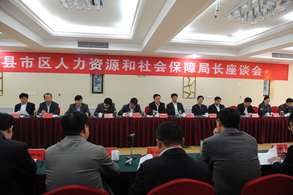 4月28日,县市区人力资源和社会保障局长座谈会召开,会议的主要任务是深入学习贯彻党的十八大精神,认真落实全国、全省人力资源社会保障有关会议和全市招商与转调创工作座谈会的部署,总结去年以来的工作,分析当前的形势,安排下一步的任务。市人力资源和社会保障局局长李静波出席会议并做讲话,局党委副书记、市人力资源管理服务中心主任郭祥峰主持会议。局领导班子成员,各县市区人力资源和社会保障局局长,市属各开发区人力资源和社会保障主管部门负责同志参加会议,并结合当前工作形势和下一步工作打算作了交流发言。