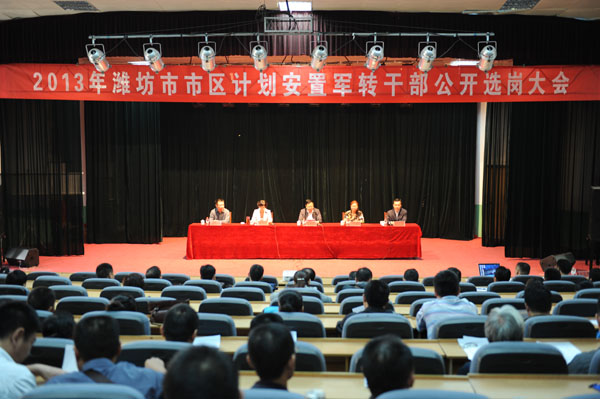 | 9月29日,我市2013年市区计划安置军队转业干部公开选岗大会召开,市区计划安置的军队转业干部按照考试、考核总成绩排名,依次选定了工作单位。市委组织部、市人社局、驻潍部队的有关领导参加了会议,市纪委派出监察专员现场监督。 2013年,我市市区计划安置军队转业干部88人,其中团职军转干部18人、技术九级军转干部7人、营职和技术10-11级军转干部50人、连排职和技术12-14级军转干部13人。通过采取考试、考核相结合的办法,坚持做到安置政策公开、安置方法公开、安置计划公开、考核标准公开、考核考试成绩公开、选岗结果公开,主动接受人大、政协、纪检监察、新闻媒体和军队转业干部的监督,按照公开、公平、公正的原则,顺利完成了军队转业干部安置工作。 |