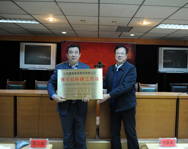 2013年11月11日,全省人才工作暨博士后站授牌仪式视频会议召开,我市在潍坊分会场组织了收听收看。在潍坊分会场上,市人力资源和社会保障局局长李静波同志对我市2013年新批准的5家博士后站分别进行了授牌。图为李局长为我市新设博士后科研工作站授牌现场。