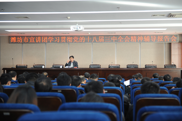 12月27日上午,市人社局在公共行政服务中心4楼会议室召开学习贯彻党的十八届三中全会精神辅导报告会,特邀市委讲师团成员胡文君教授对十八届三中全会精神进行系统阐述和全面解读。局机关全体人员、局属单位正科级以上干部150多人听取了报告,局党委副书记王家吉主持报告会。 报告会上,胡文君深入阐释了党的十八届三中全会的精神实质和重要意义,系统讲解了全面深化改革的指导思想、总体目标、基本原则、重大部署和创新举措等。报告紧扣党的十八届三中全会主题,围绕六大制度体制改革,坚持理论与实际结合、历史与现实结合,内容翔实、思路清晰、阐述深入,既有理论的深度,又有时代气息和很强的针对性,对于深刻理解和把握三中全会重大理论观点和重大工作部署,运用三中全会精神推动工作、指导实践,具有积极的指导作用。 最后,王家吉指出,党的十八届三中全会对全面深化改革做出了战略部署,意义重大,影响深远,标志着我国改革从单向突破转入了全面推进、全面深化的阶段。全局干部职工要进一步提高思想认识,认真学习贯彻党的十八届三中全会精神,深刻领会和把握全面深化改革的重大意义和总体目标,特别是要认真学习领会《决定》中有关人社工作改革的新思路、新观点、新举措,把学习贯彻十八届三中全会精神与当前的人社工作结合起来,积极适应经济社会发展的新形势,顺应人民群众的新期盼,努力推动人社事业向前发展。 |