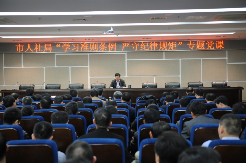 3月21日下午,局系统“学习准则条例,严守纪律规矩”专项教育活动党课在市政务服务中心4楼6号会议室举办。局党委书记、局长李静波同志围绕“学习准则条例,严守纪律规矩”主题,从认清形势、明确重点、学思践悟三个层面就严明党的纪律规矩有关问题进行专题讲解。