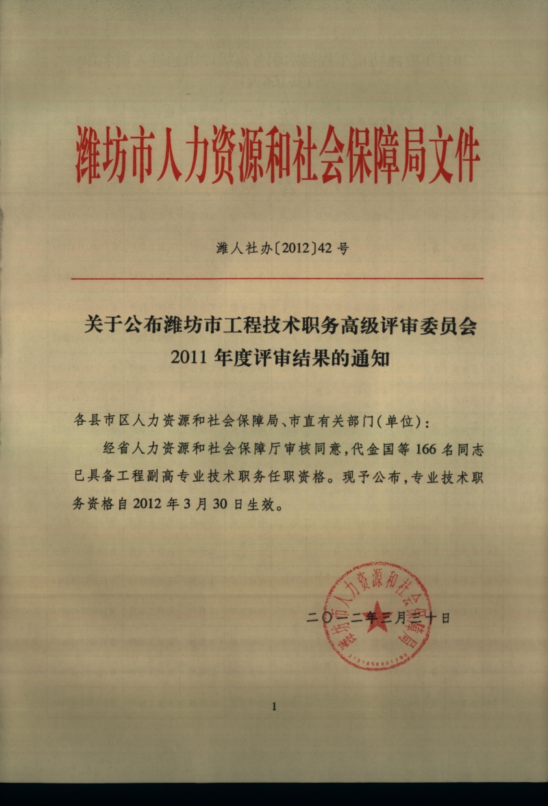 关于公布潍坊市工程技术职务高级评审委员会2011年度评审结果的通知.pdf